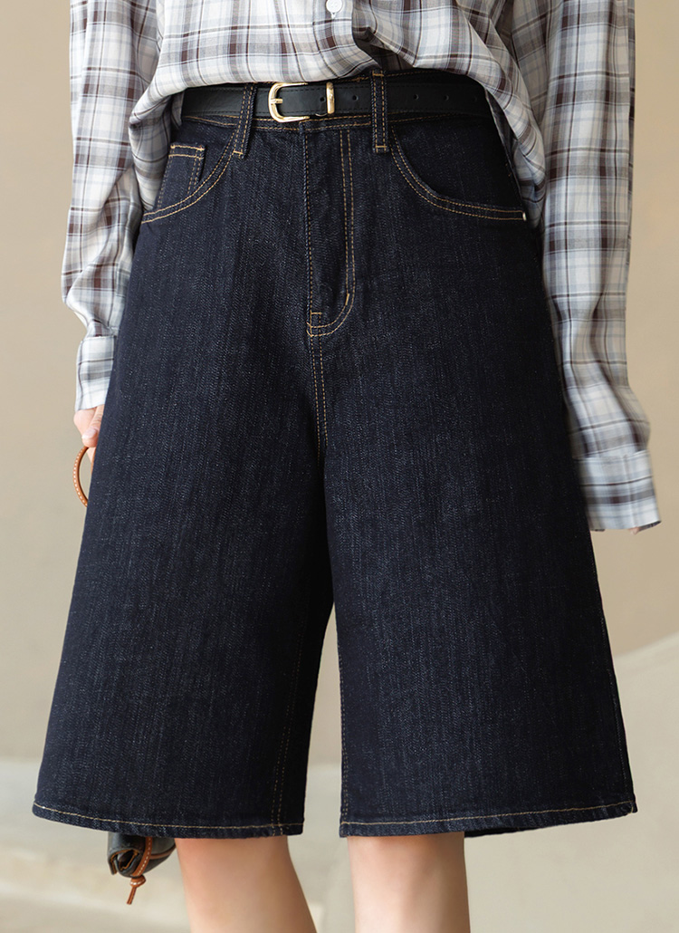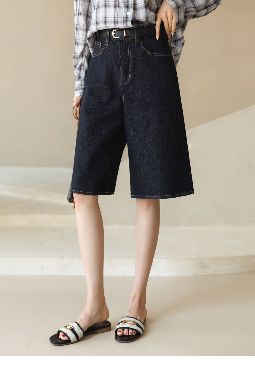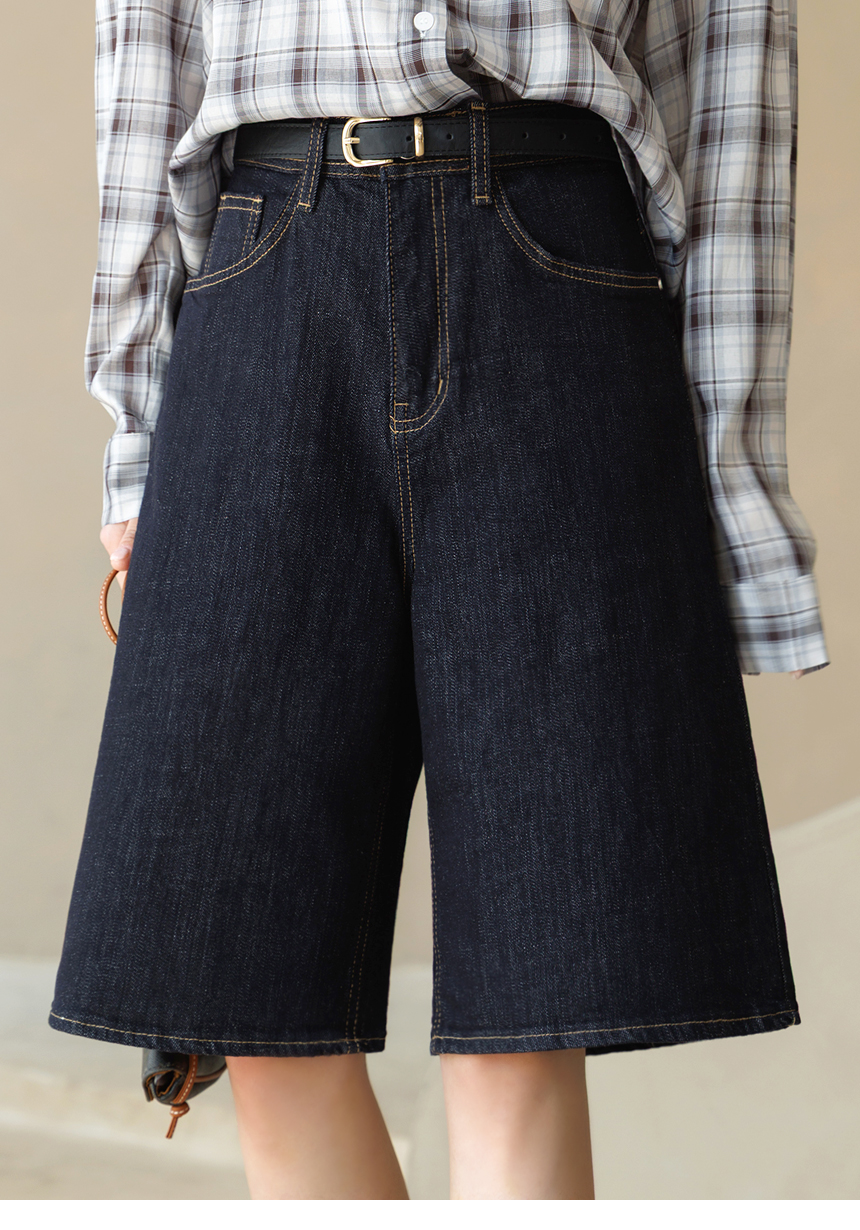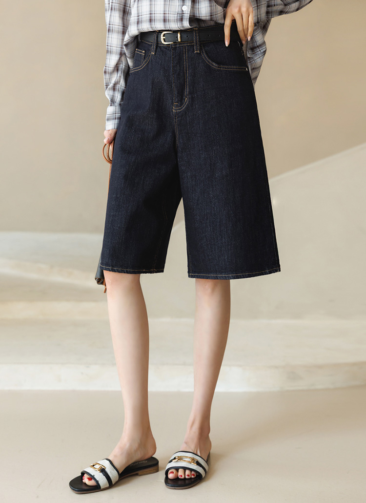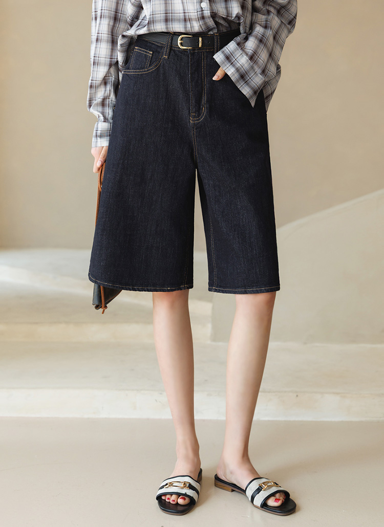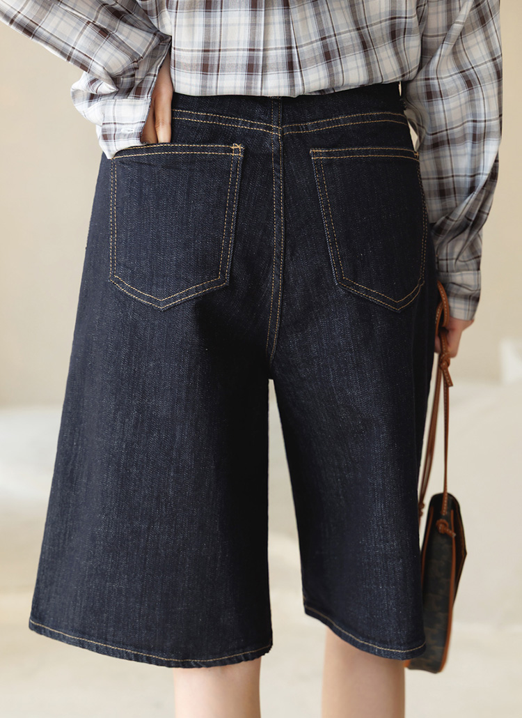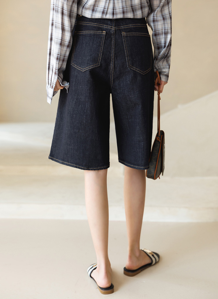 [Theonme] 메르벤 히든밴딩 세미 와이드 5부 면 데님 반바지 팬츠