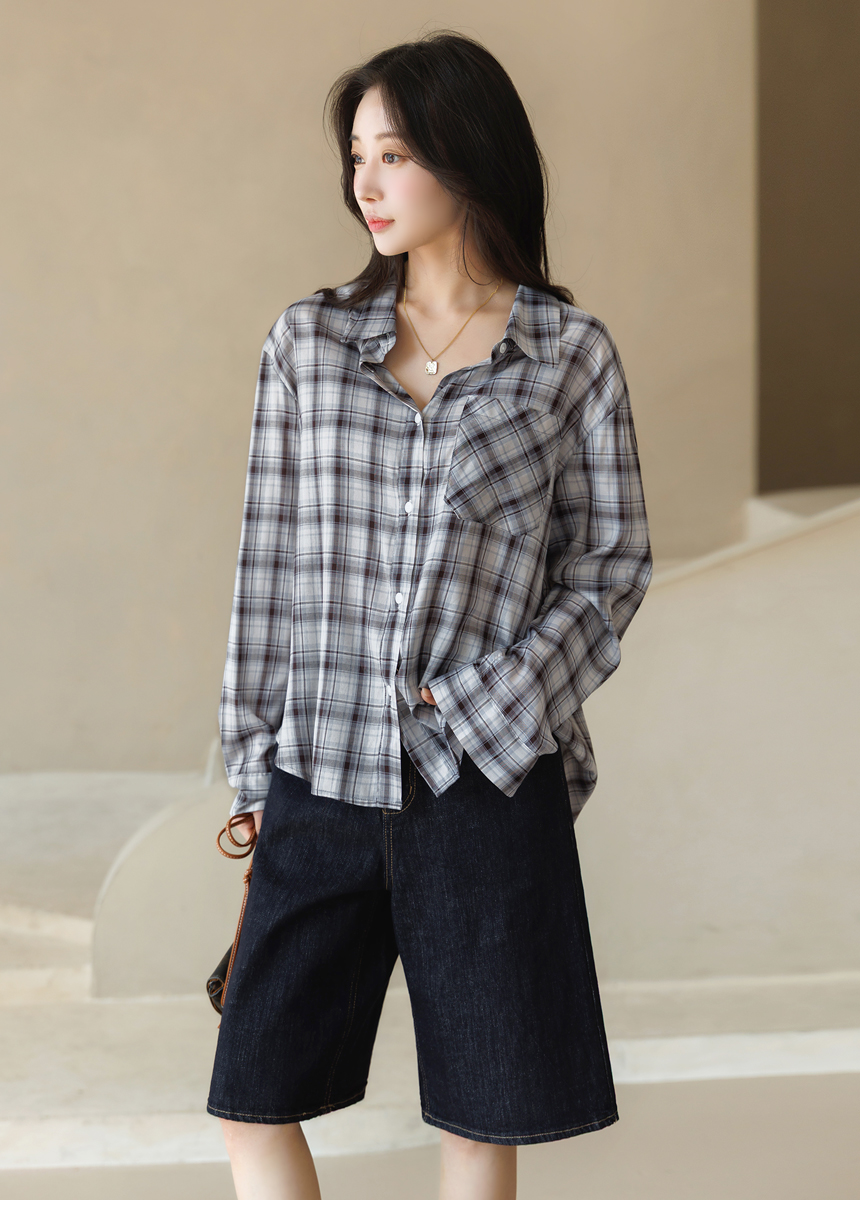 • [Theonme] 그리브 여리 루즈 라이트 체크 셔츠 남방