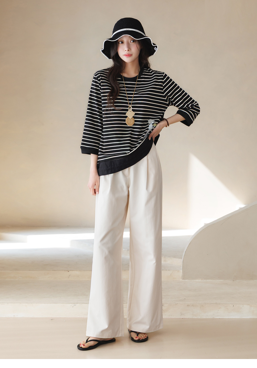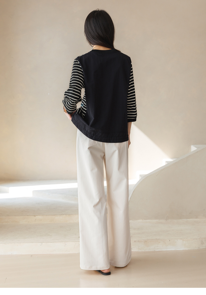 7부 소매 기장감이 팔 라인을 부드럽게 감싸