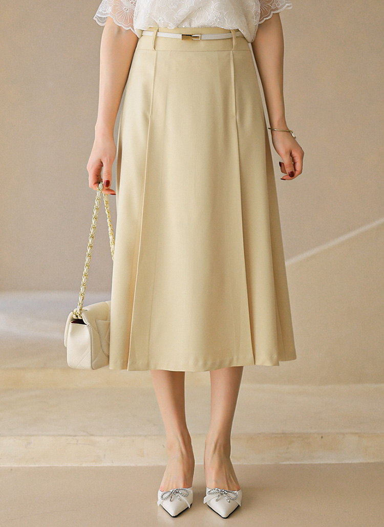 (55-77) A라인 플레어 사이드 플리츠 롱 스커트