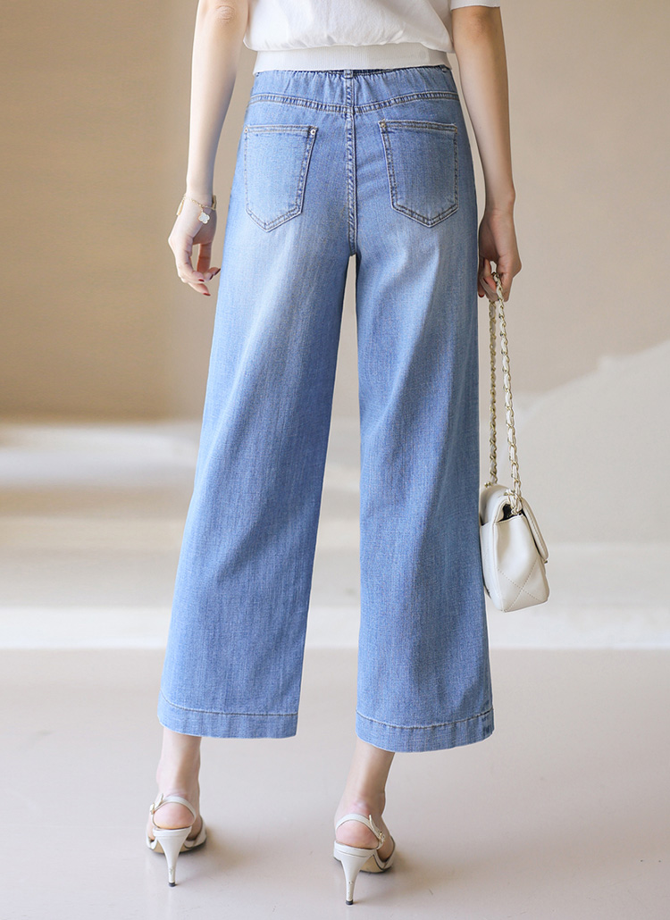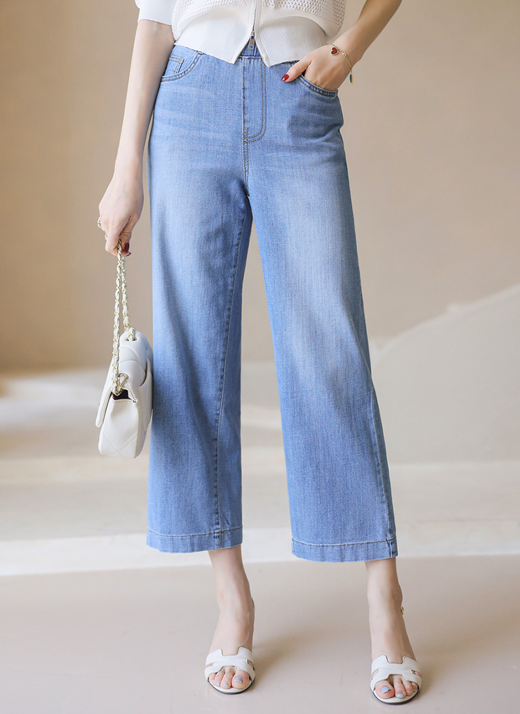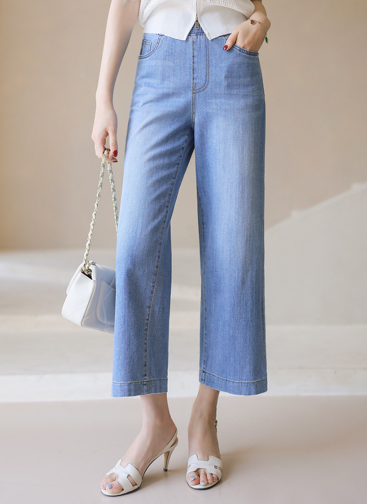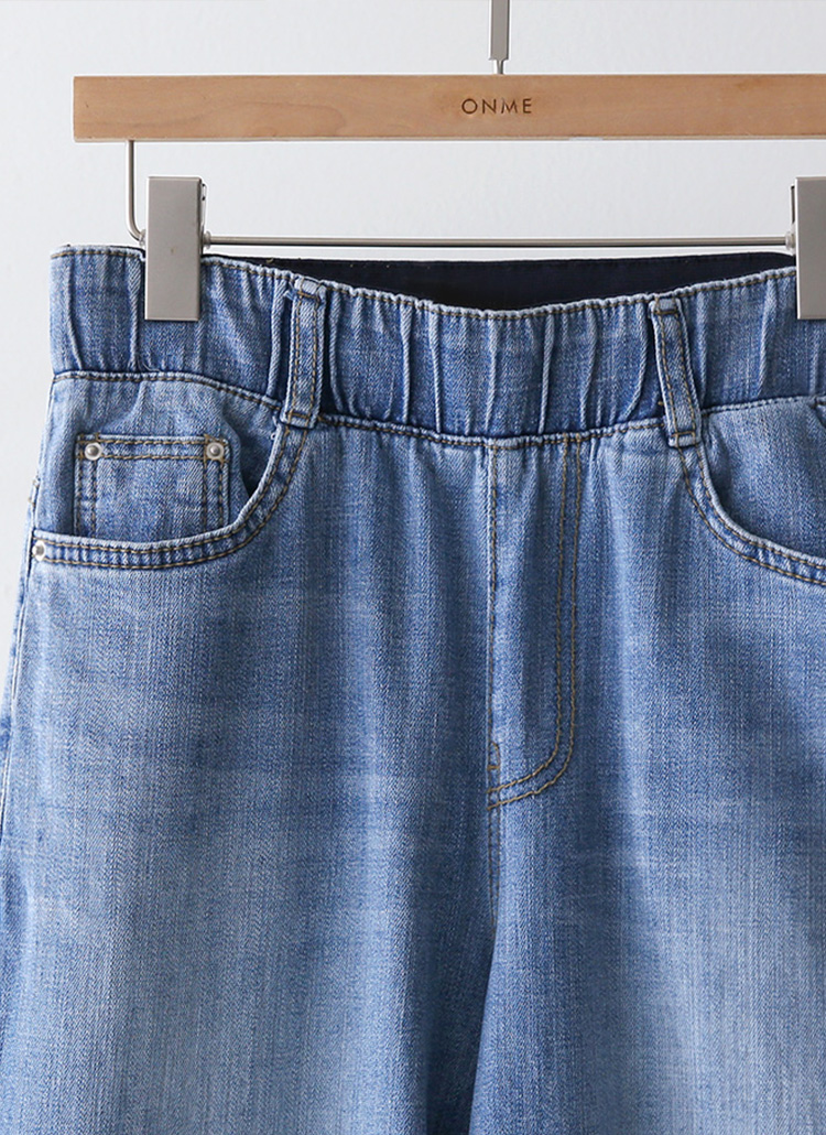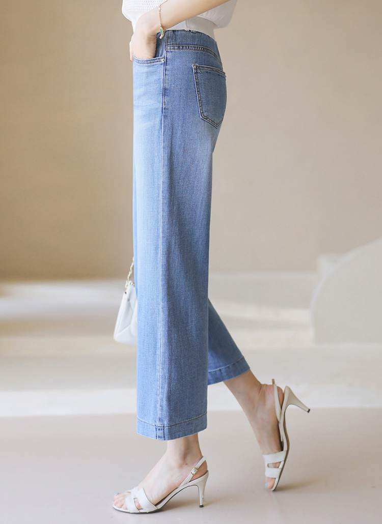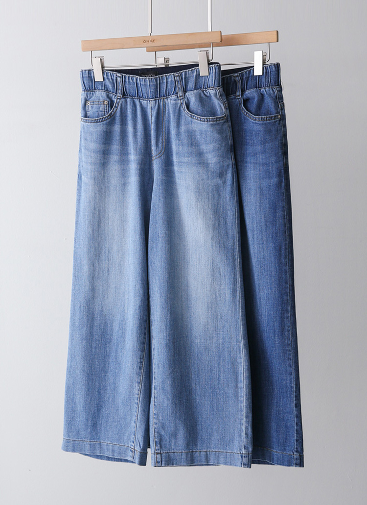 (55-77) 9부 허리밴딩 일자 세미와이드 데님 팬츠