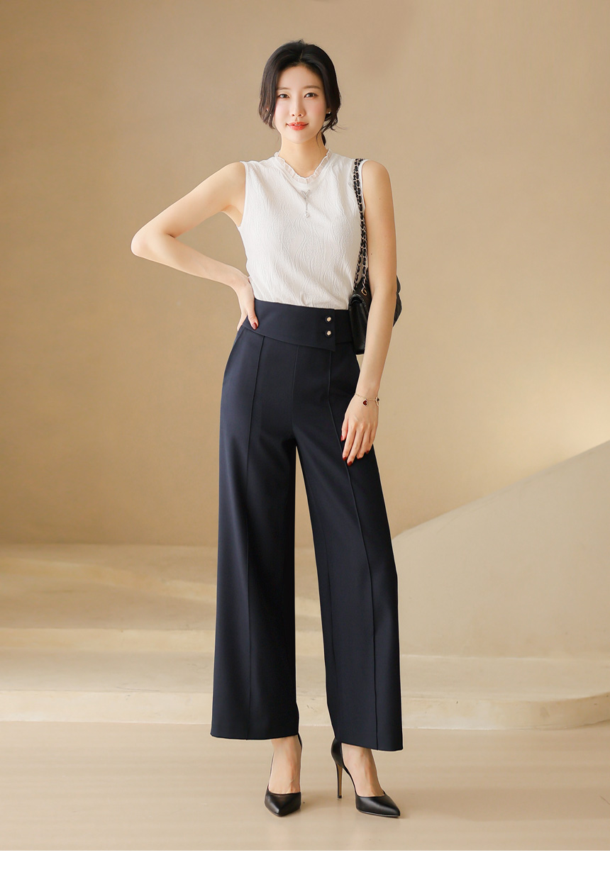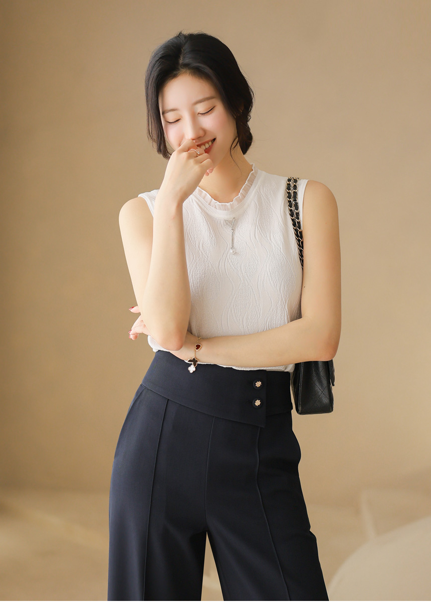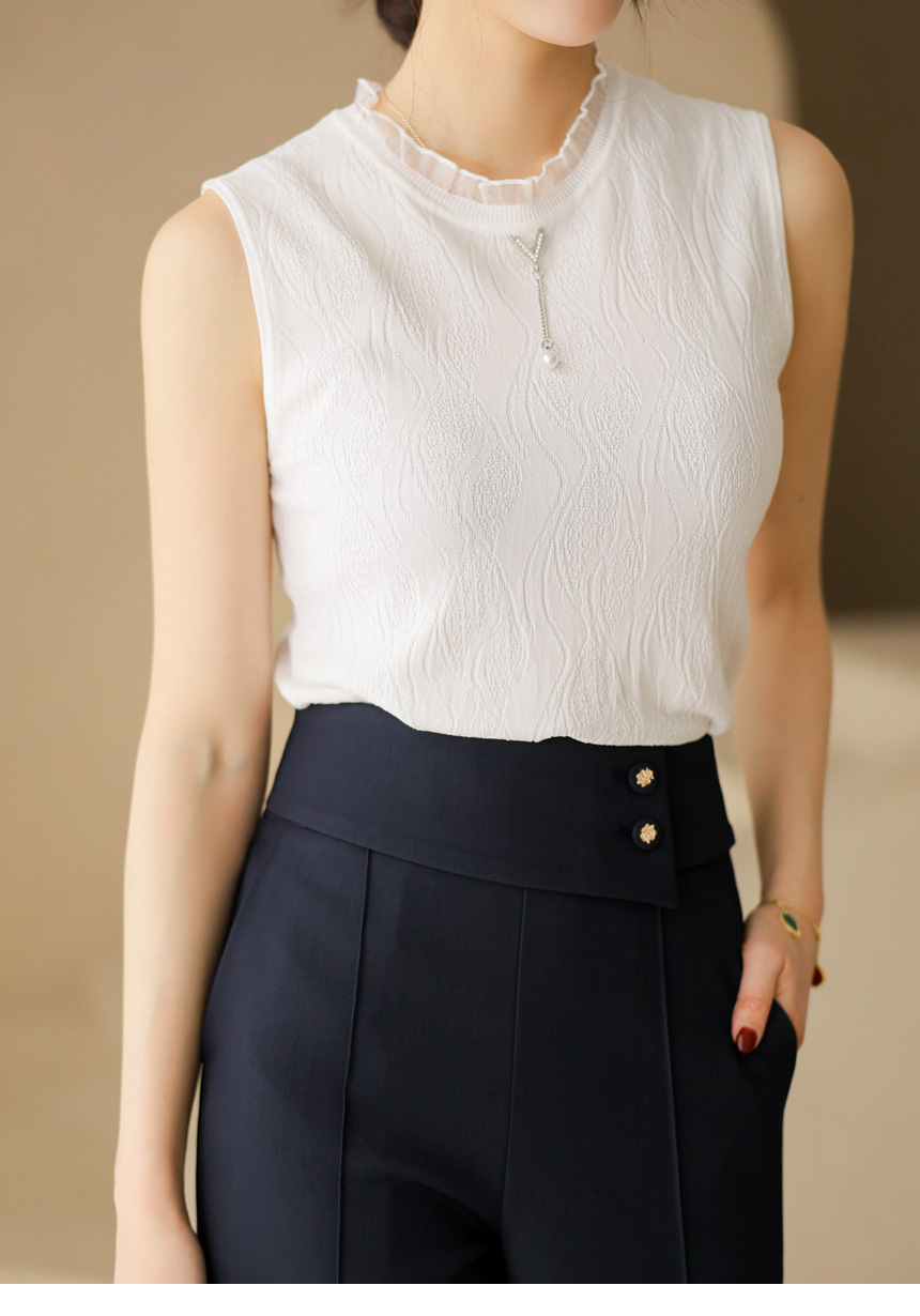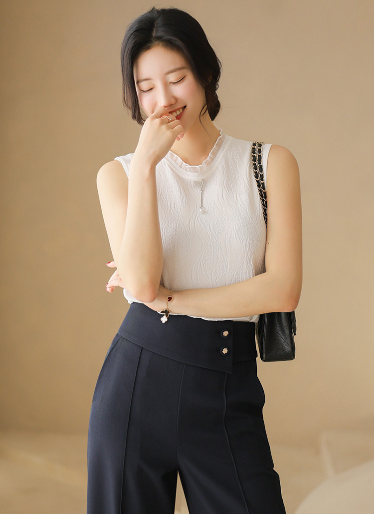 라운드 넥라인에는 시스루한 프릴 배색을 더해