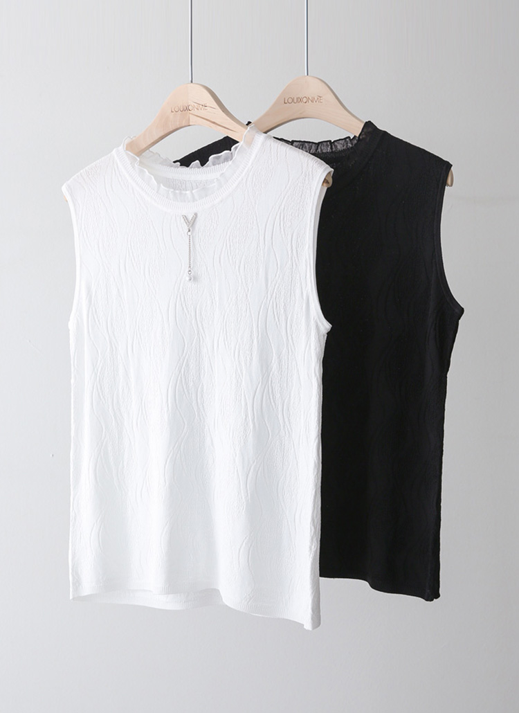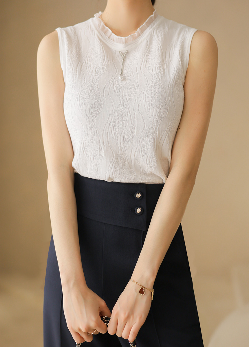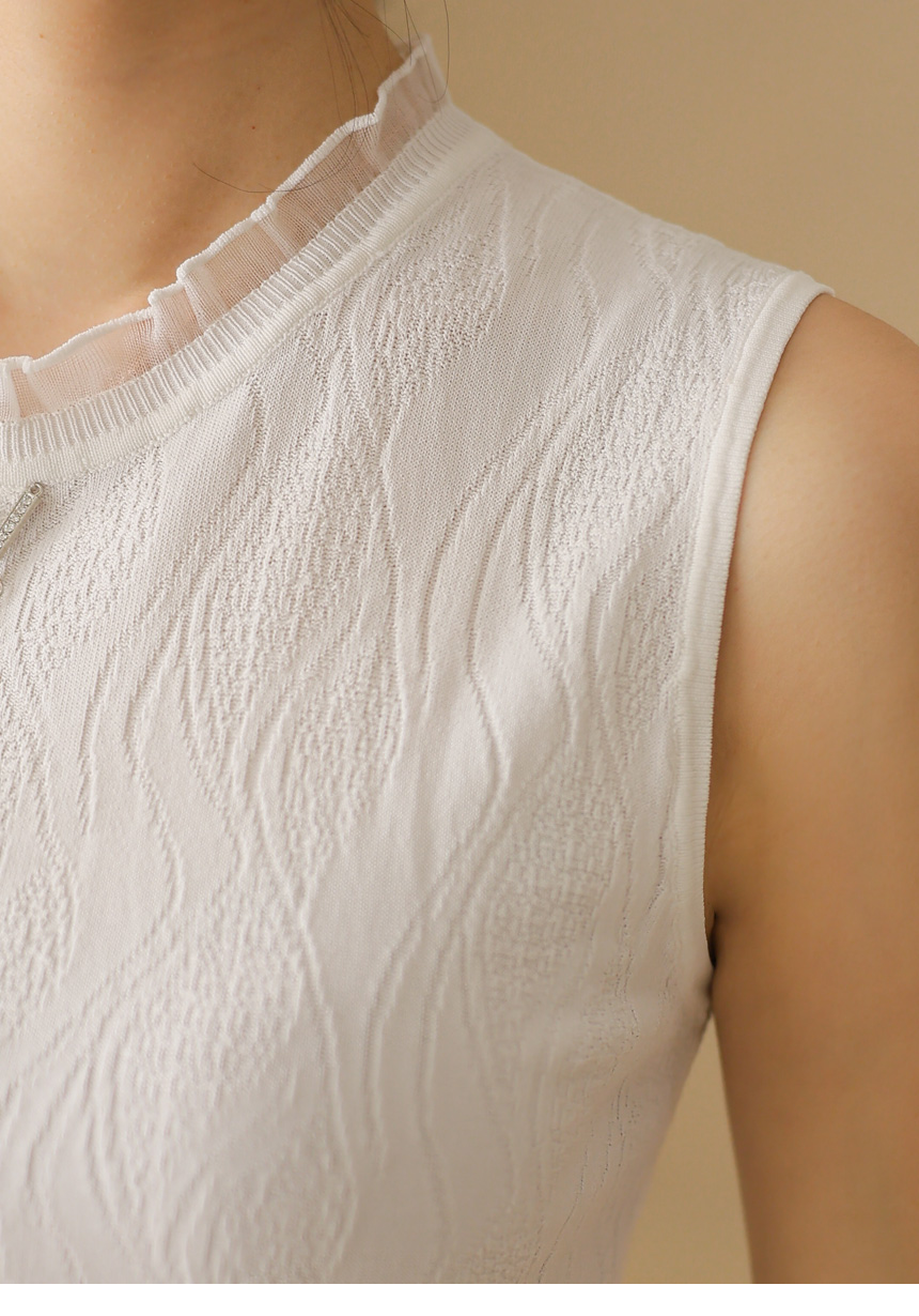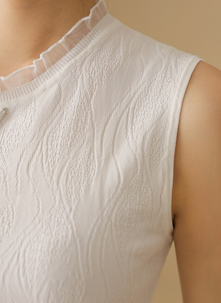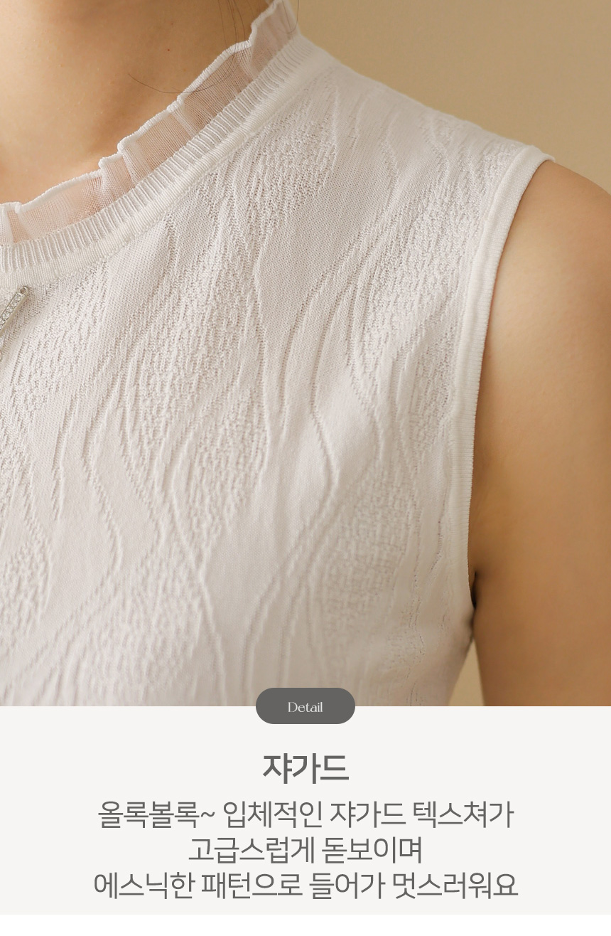 쟈가드 스카시 에스닉 물결 패턴 시스루 프릴배색 니트 나시