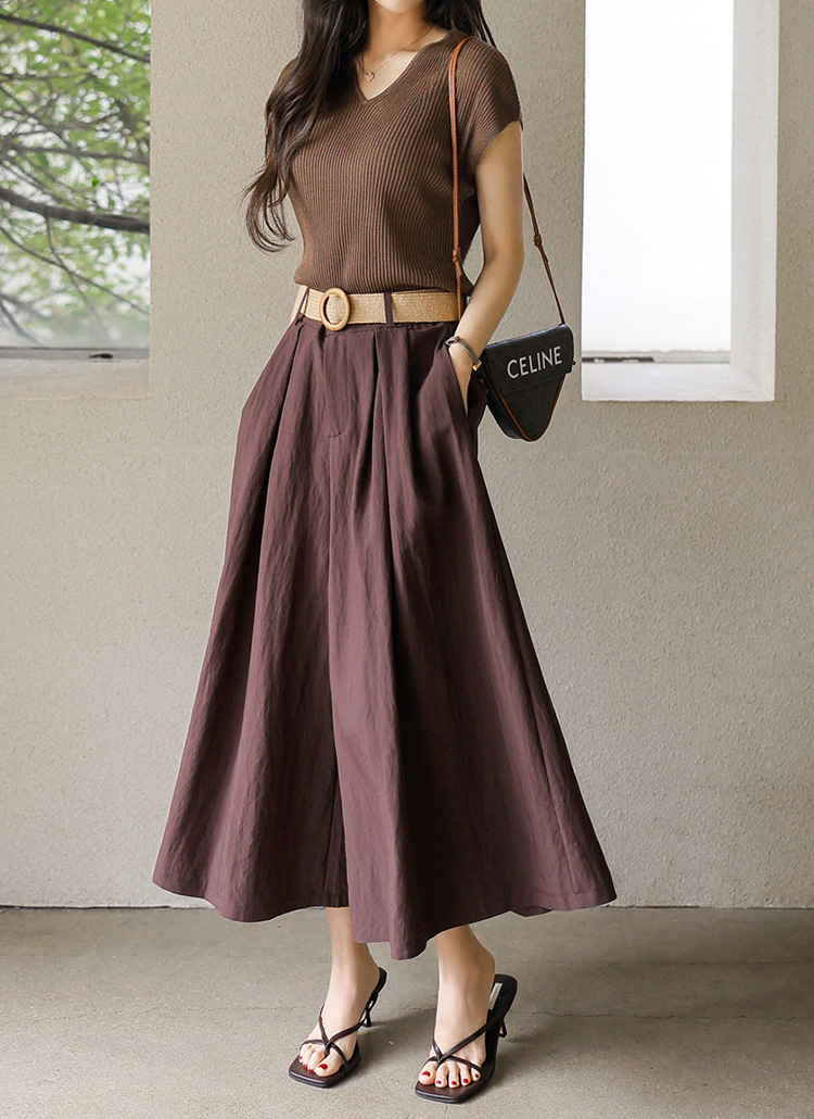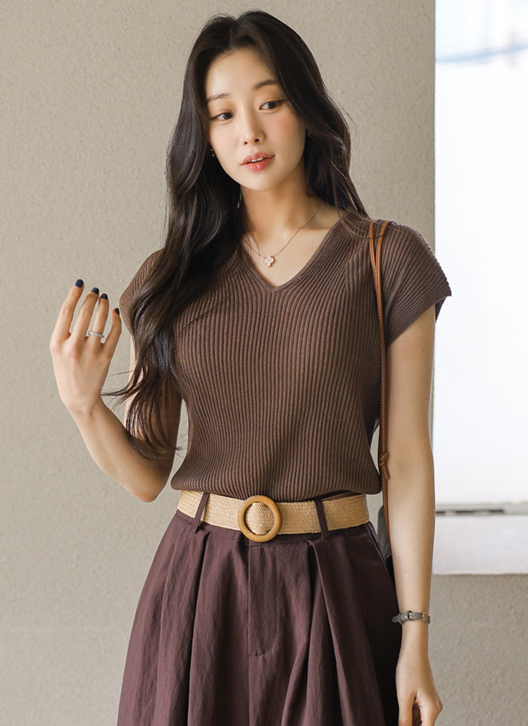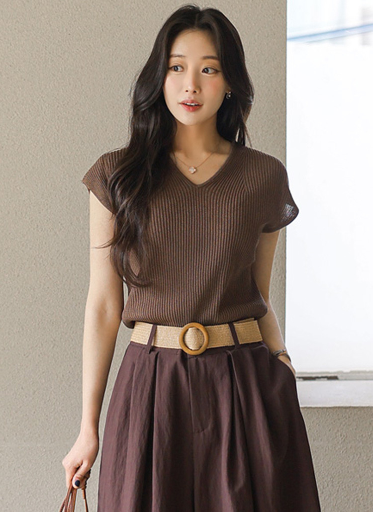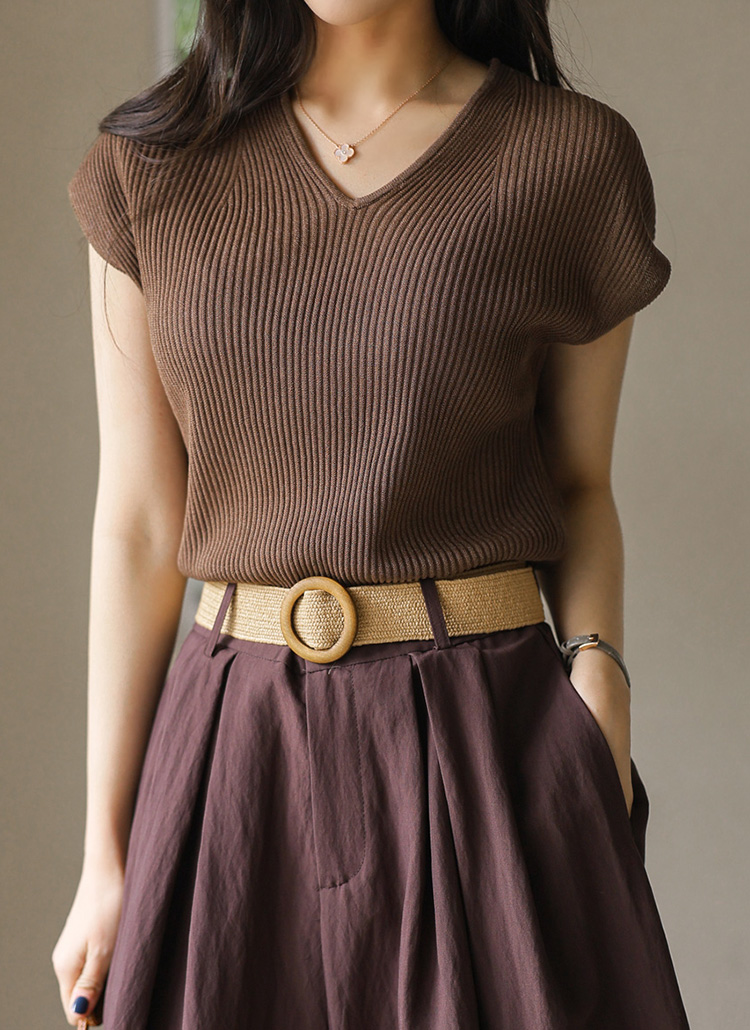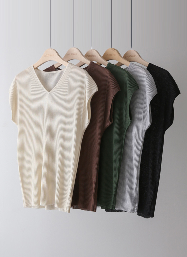 캡소매 브이넥 스카시 골지 짜임 심플 베이직 니트