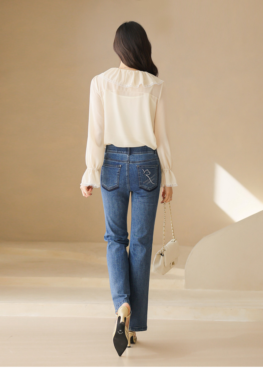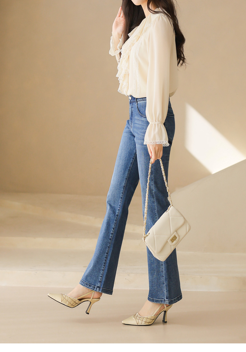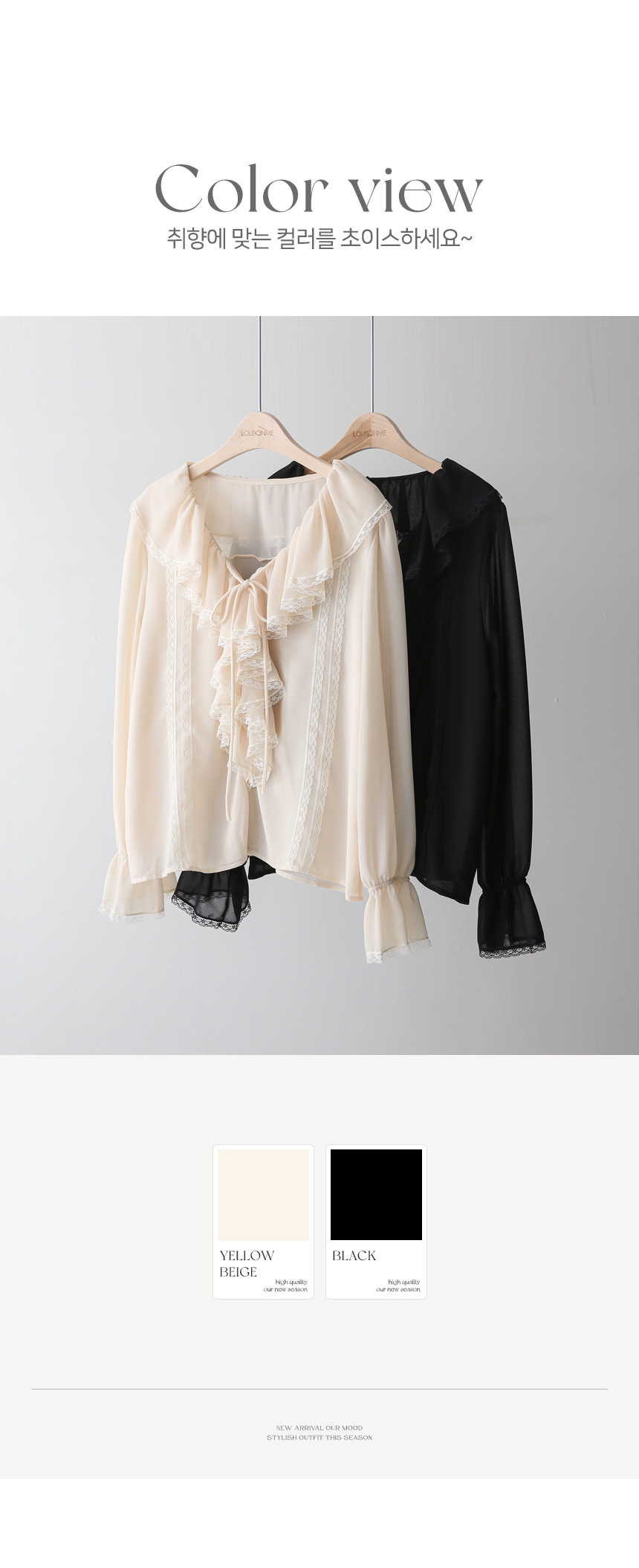 사랑스러운 디테일과 우아한 실루엣이 어우러진 러플넥 레이스 블라우스예요