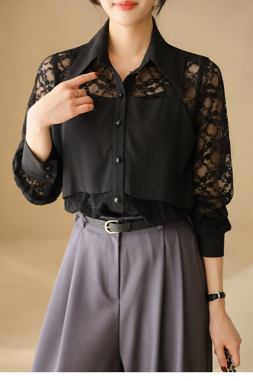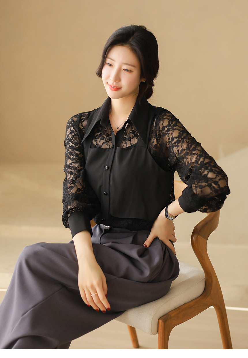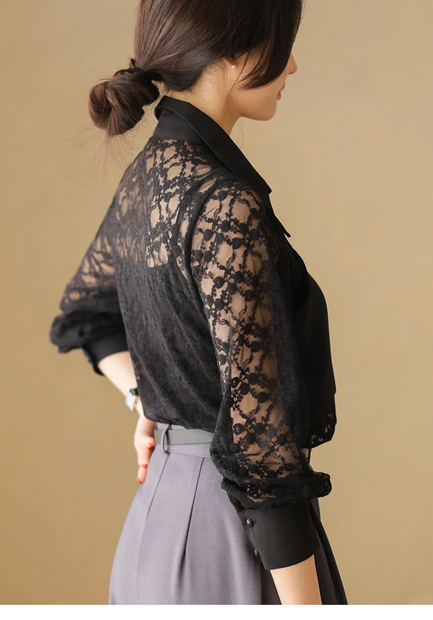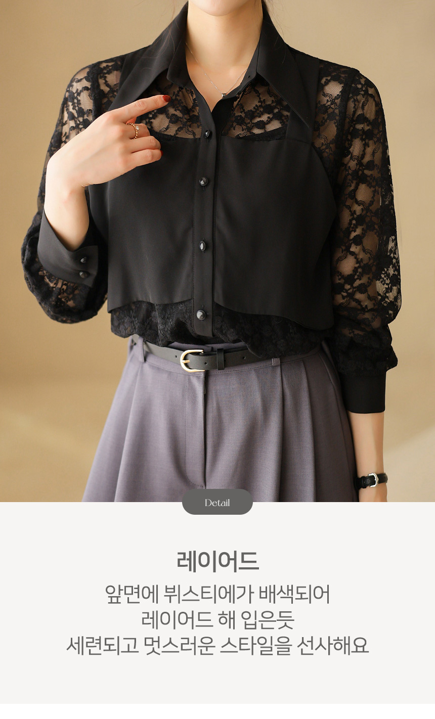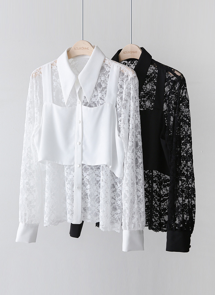 플라워 시스루 레이스 뷔스티에 레이어드 카라 블라우스