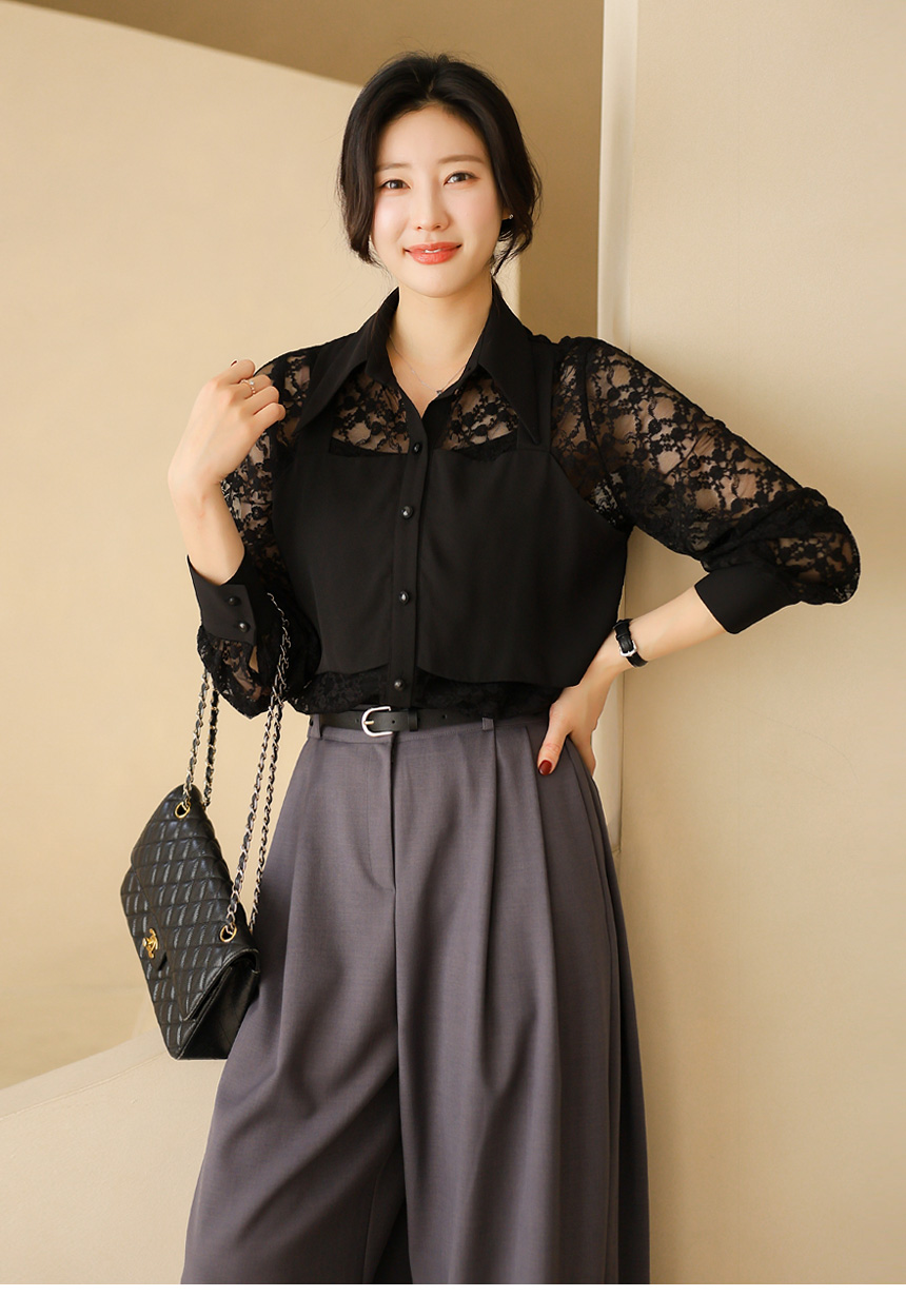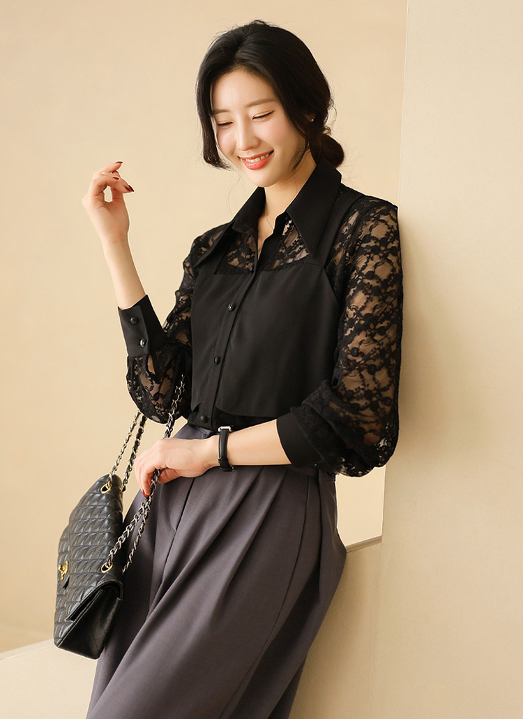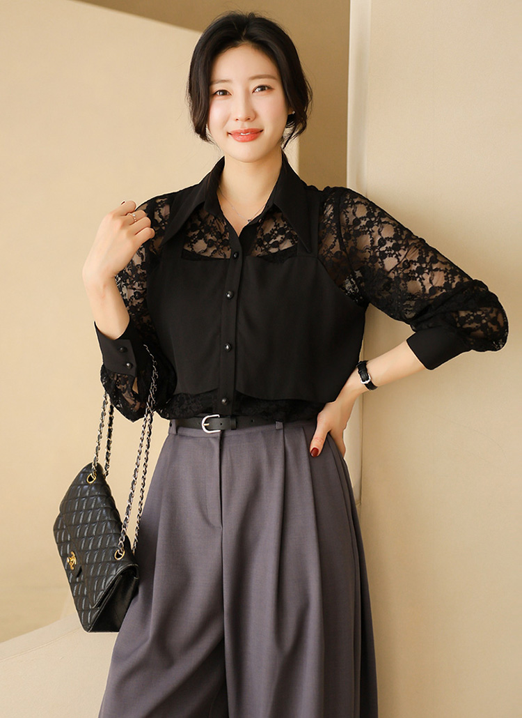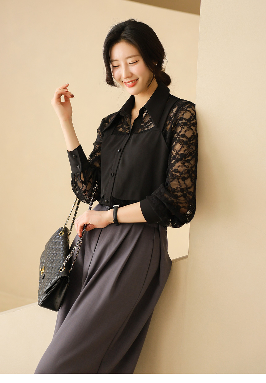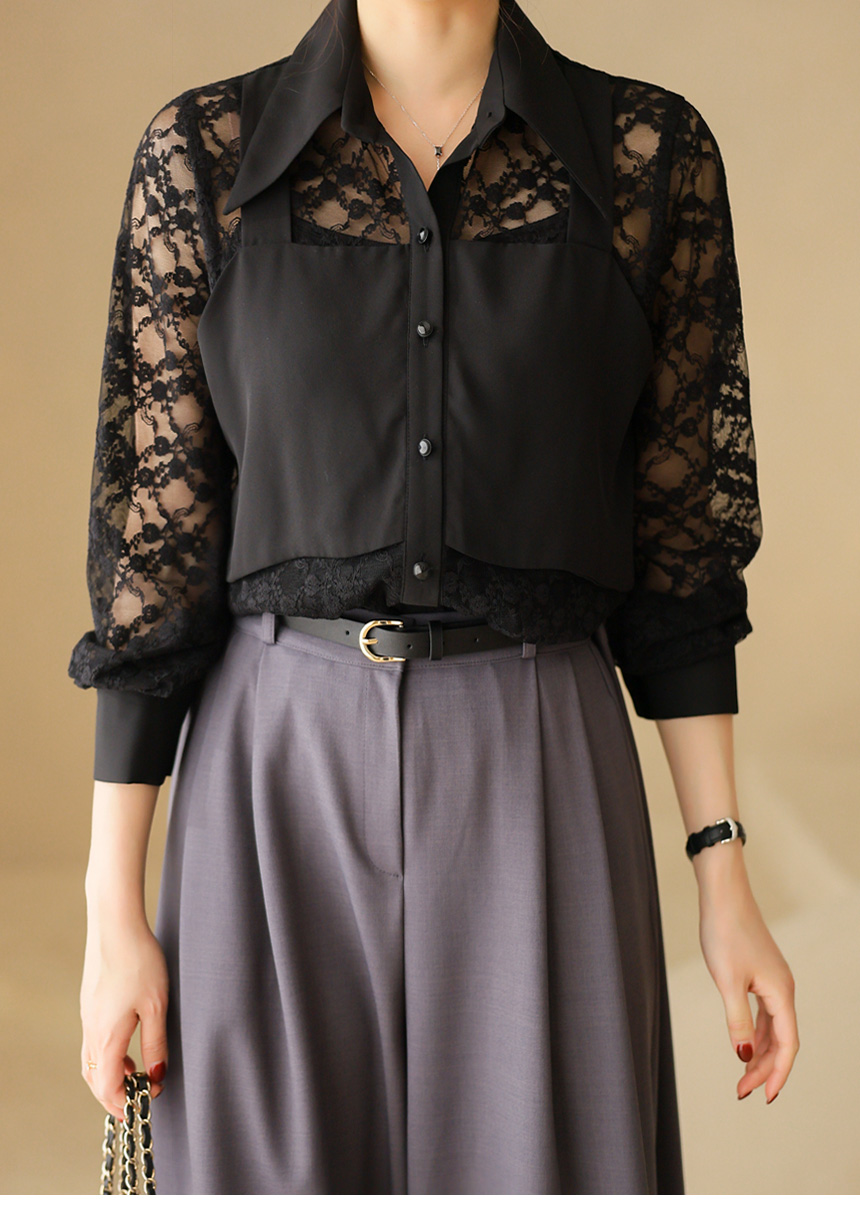 플라워 시스루 레이스 뷔스티에 레이어드 카라 블라우스