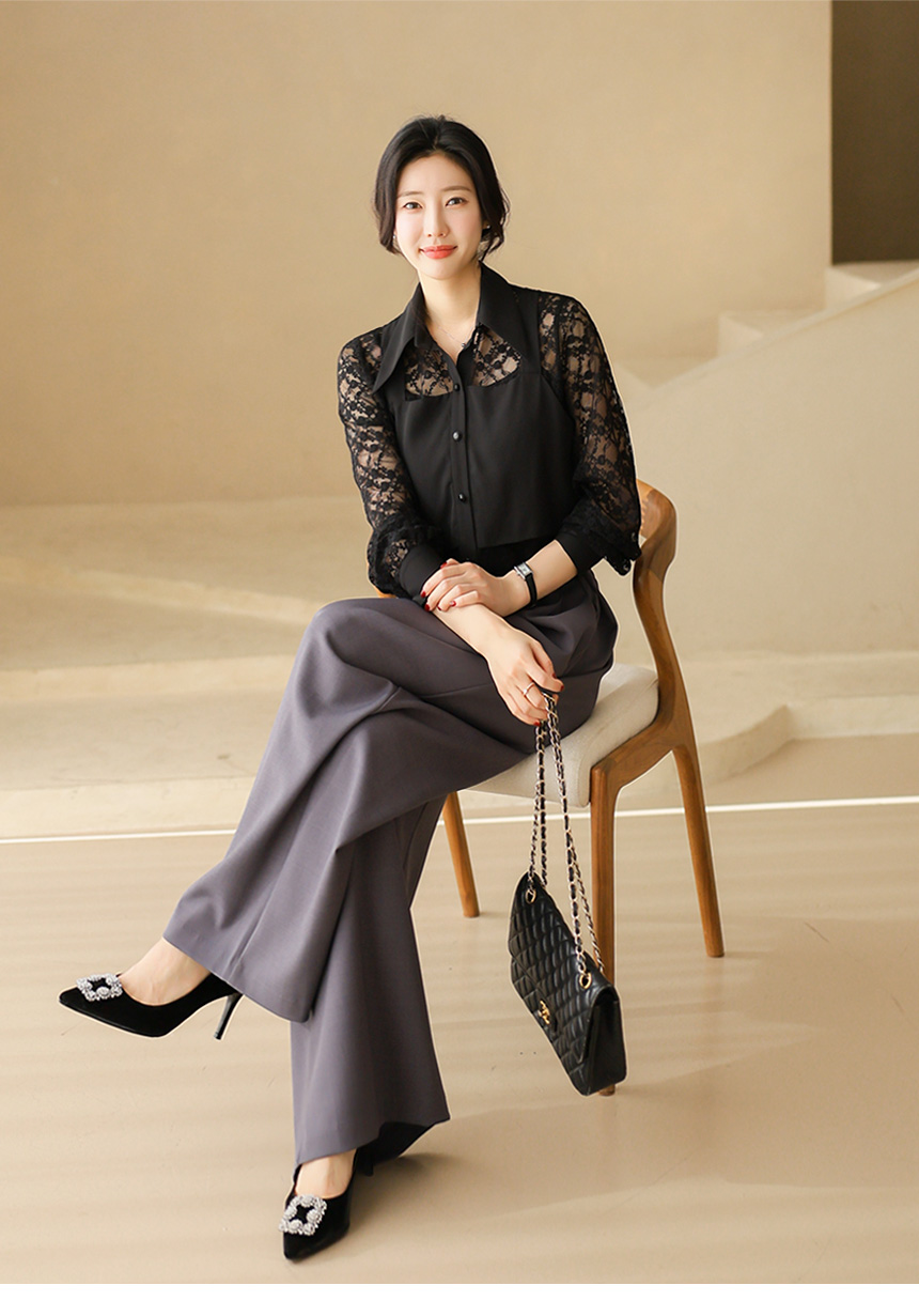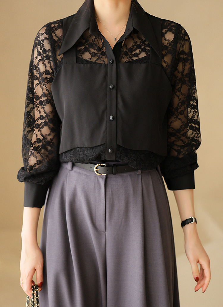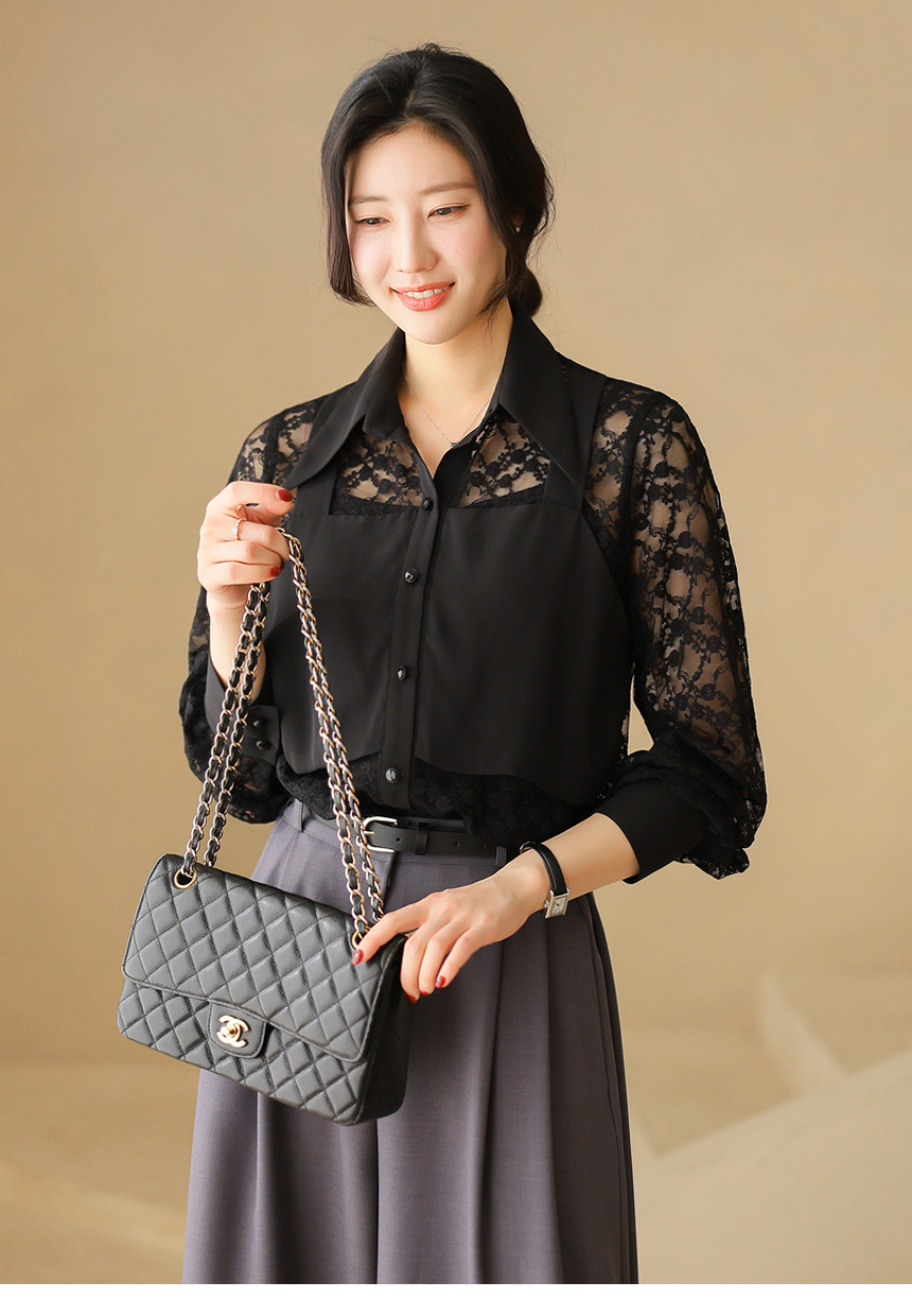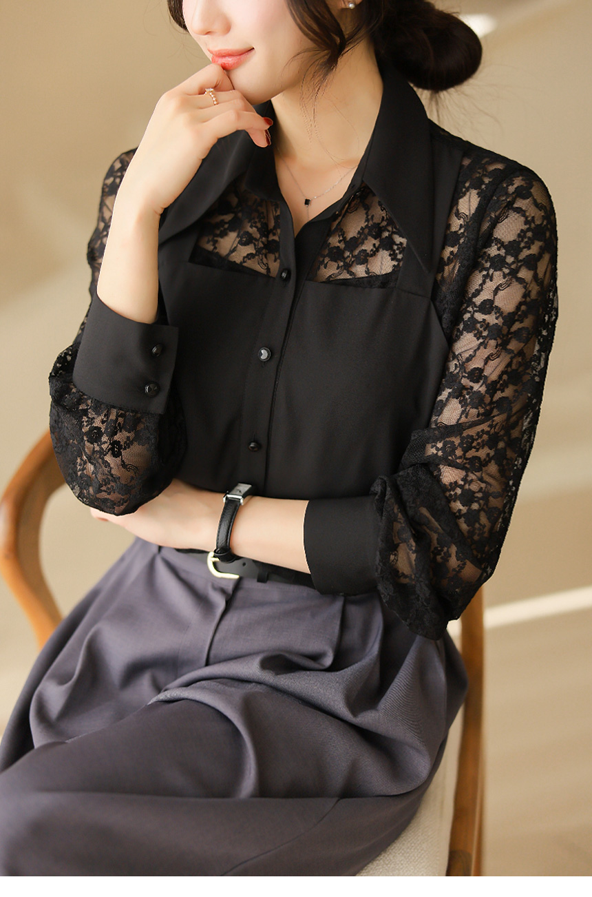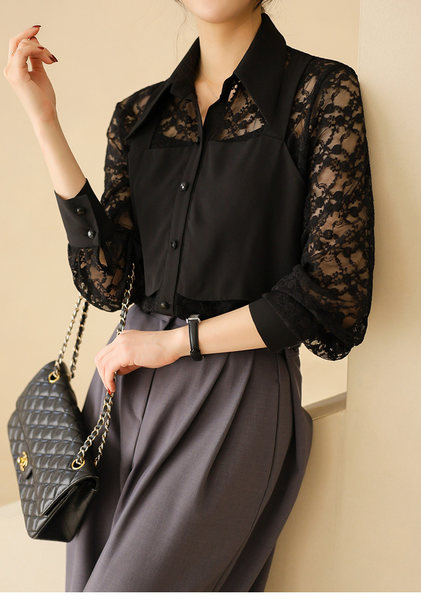 플라워 시스루 레이스 뷔스티에 레이어드 카라 블라우스