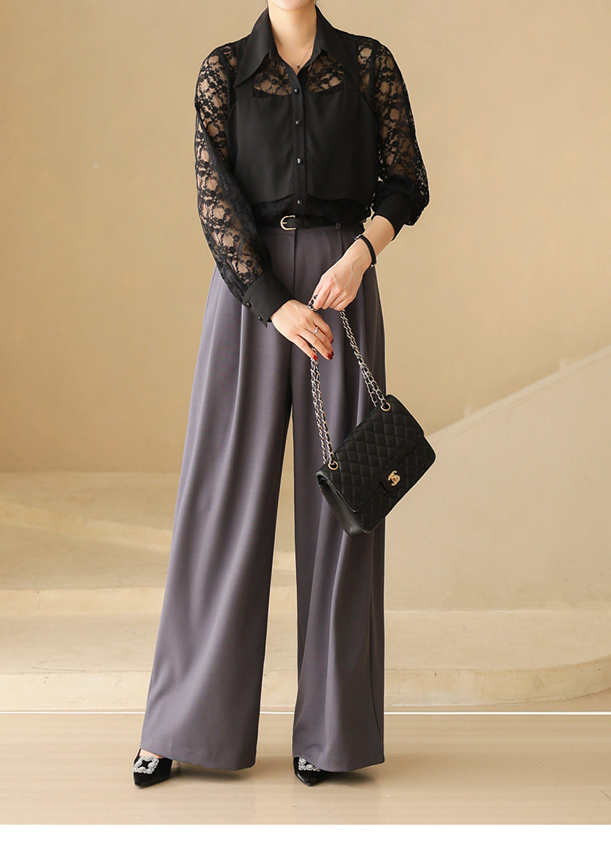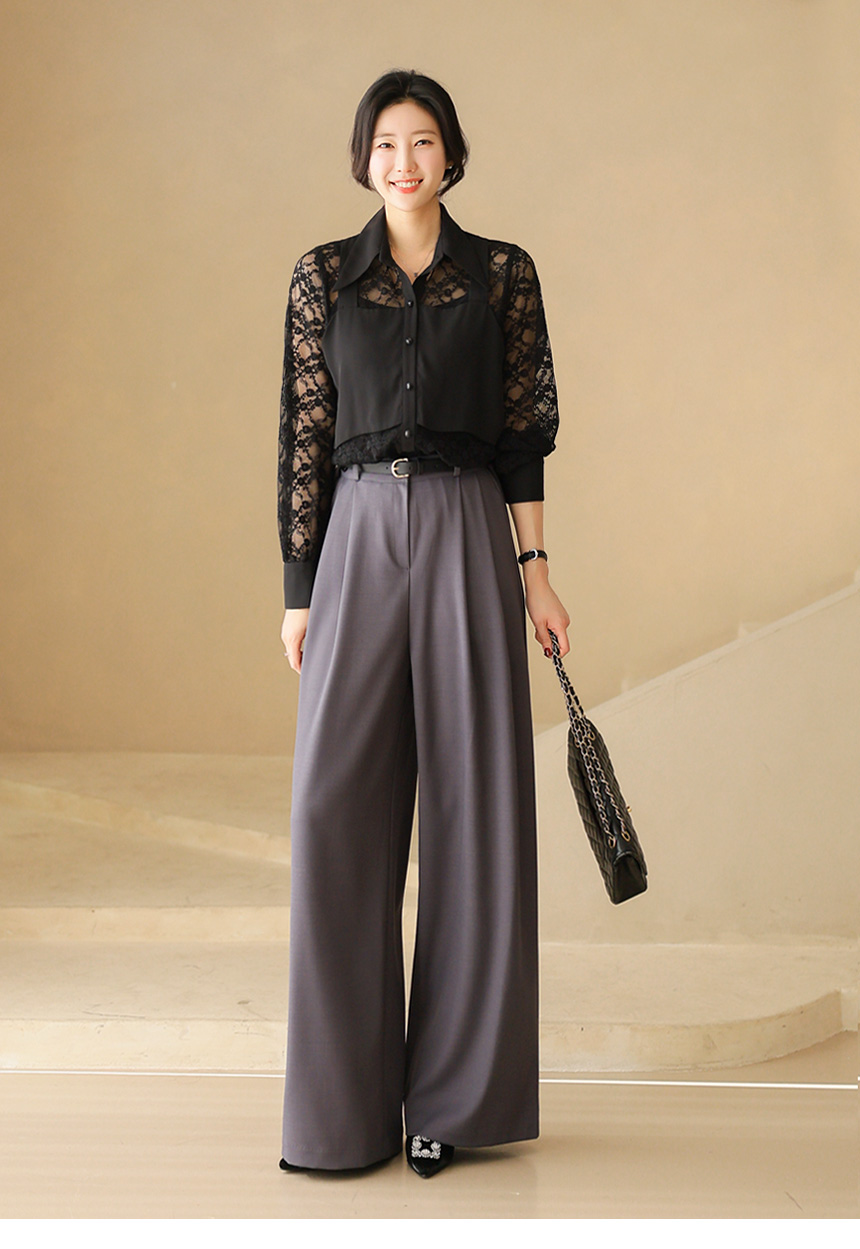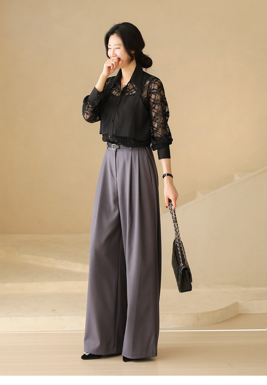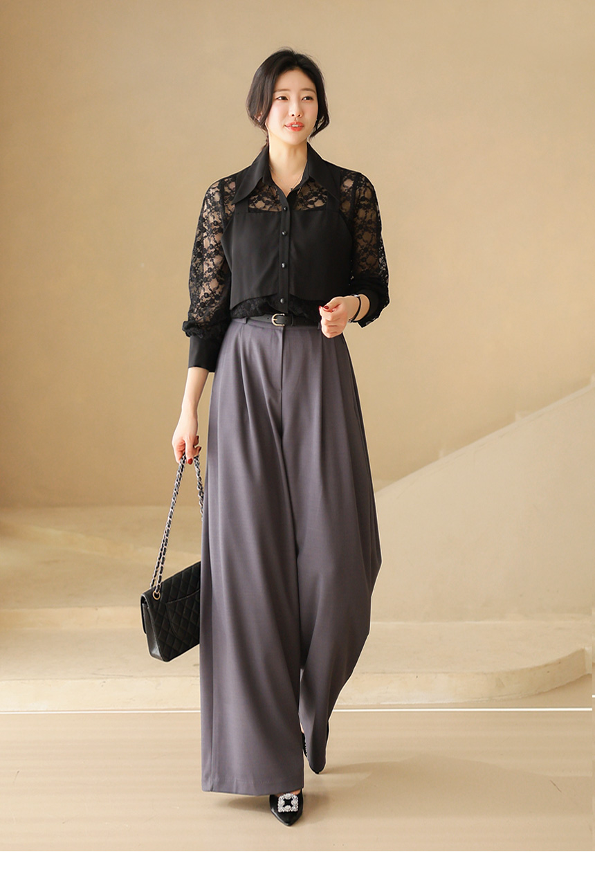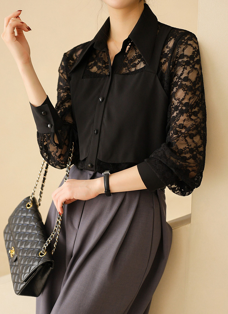 플라워 시스루 레이스 뷔스티에 레이어드 카라 블라우스