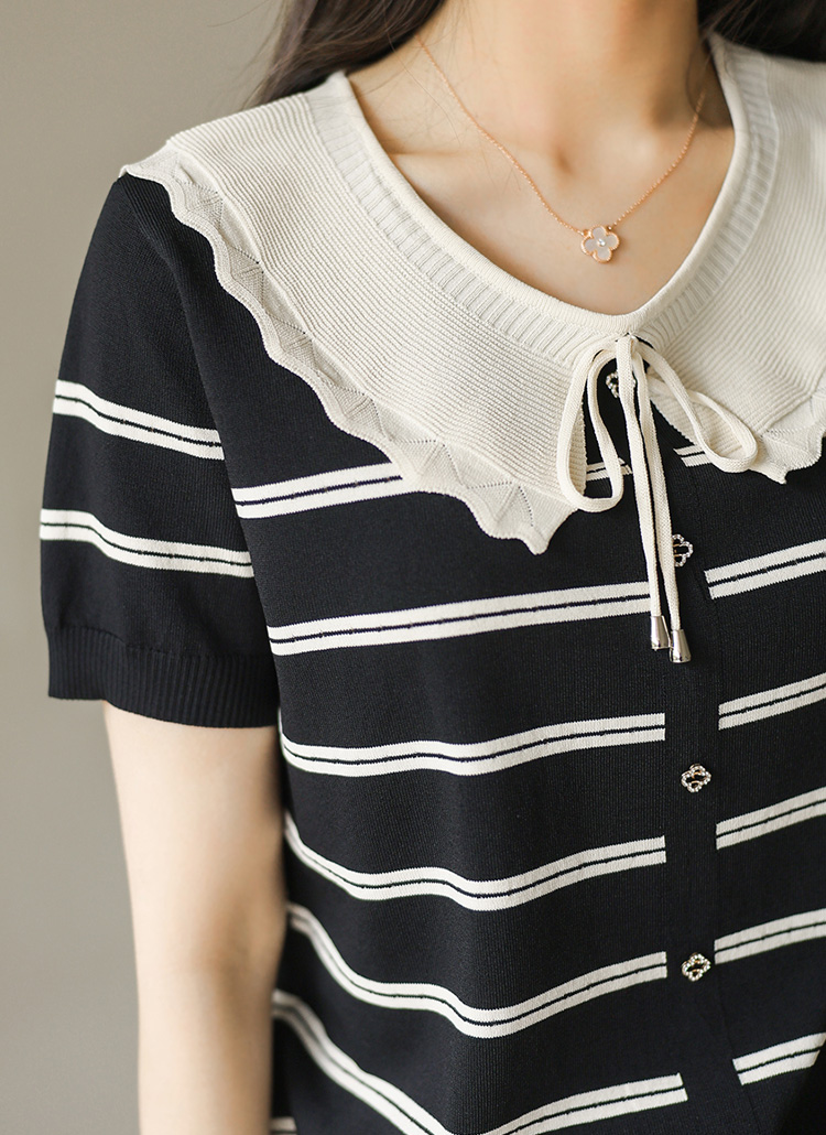 물결처럼 부드럽게 흐르는 배색 카라 디테일이 더해져