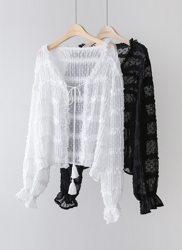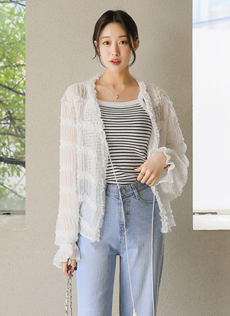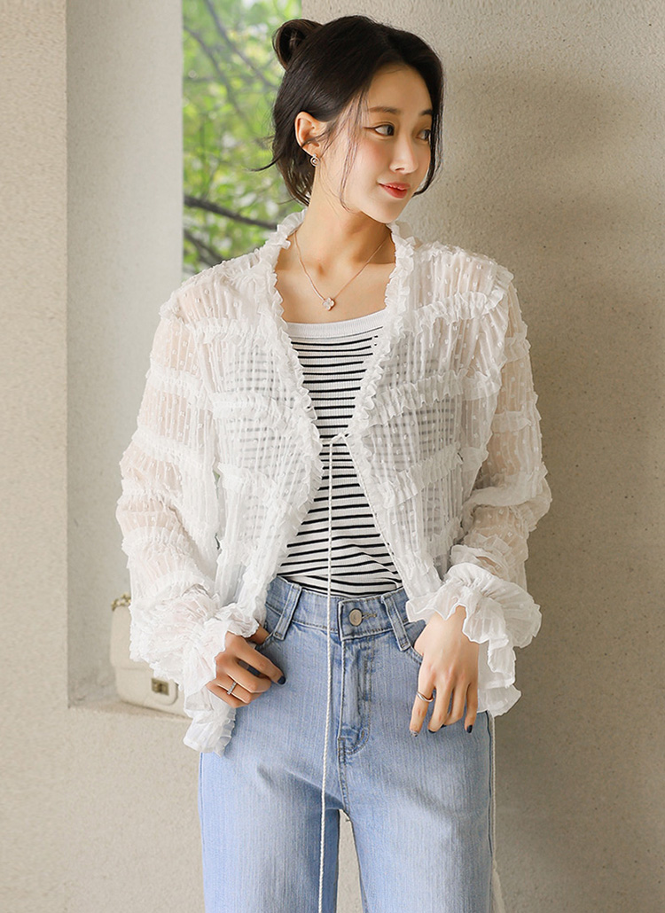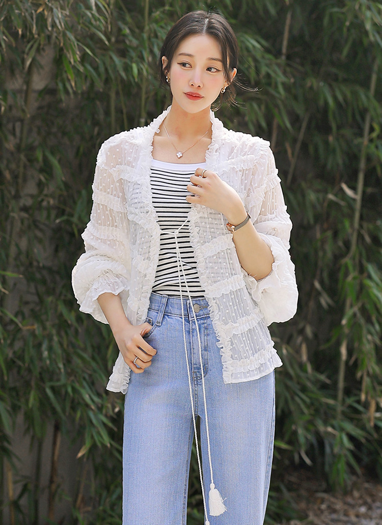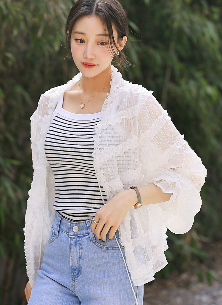 도트 쟈가드 캉캉 프릴 스트라이프 요루 쉬폰 로브 가디건