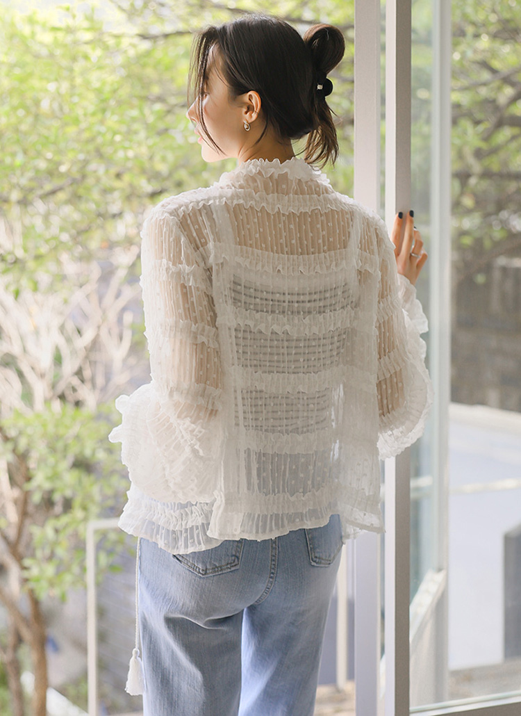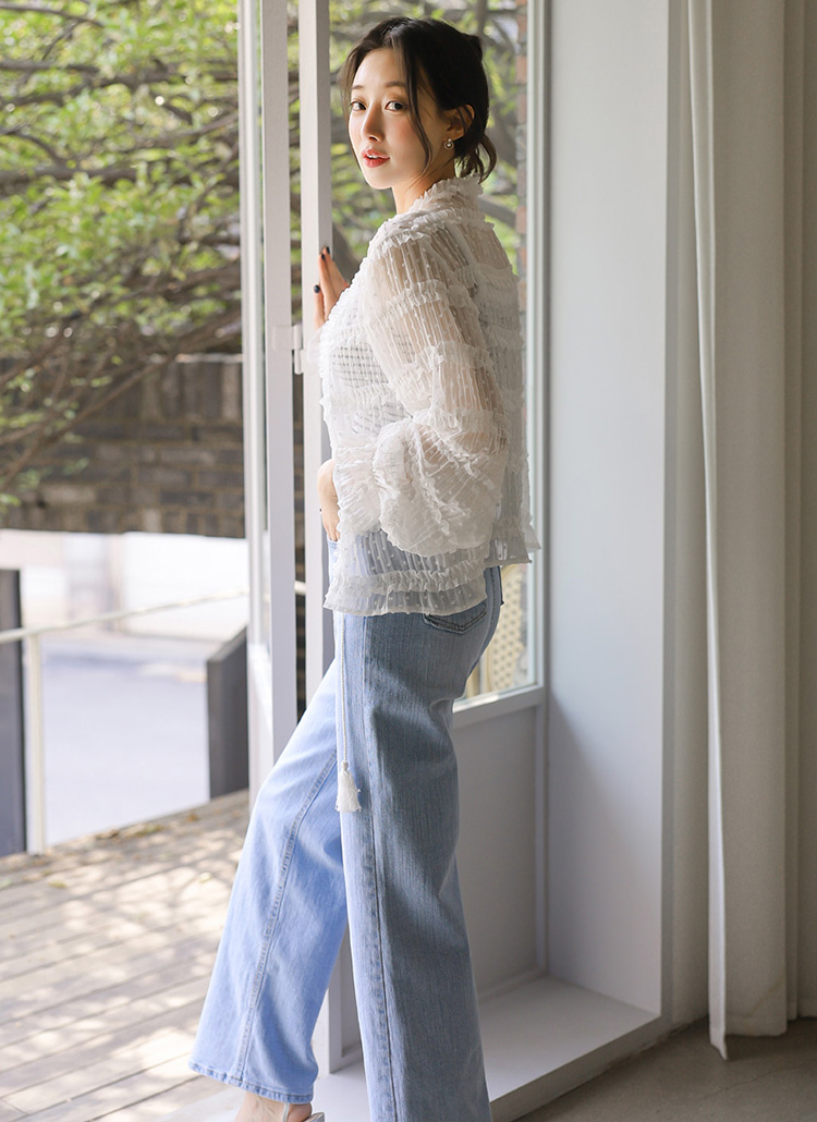 가볍고 은은하게 비치는 시스루 원단이 피부 위에 부드럽게 내려앉으며