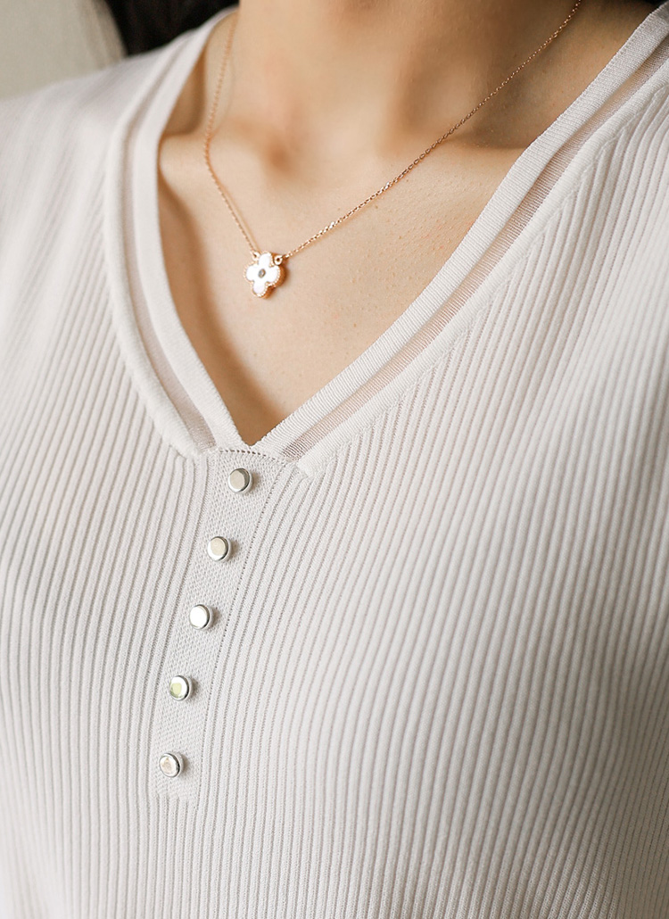 깔끔하게 떨어지는 브이넥 라인에 시스루 배색 디테일을 더해