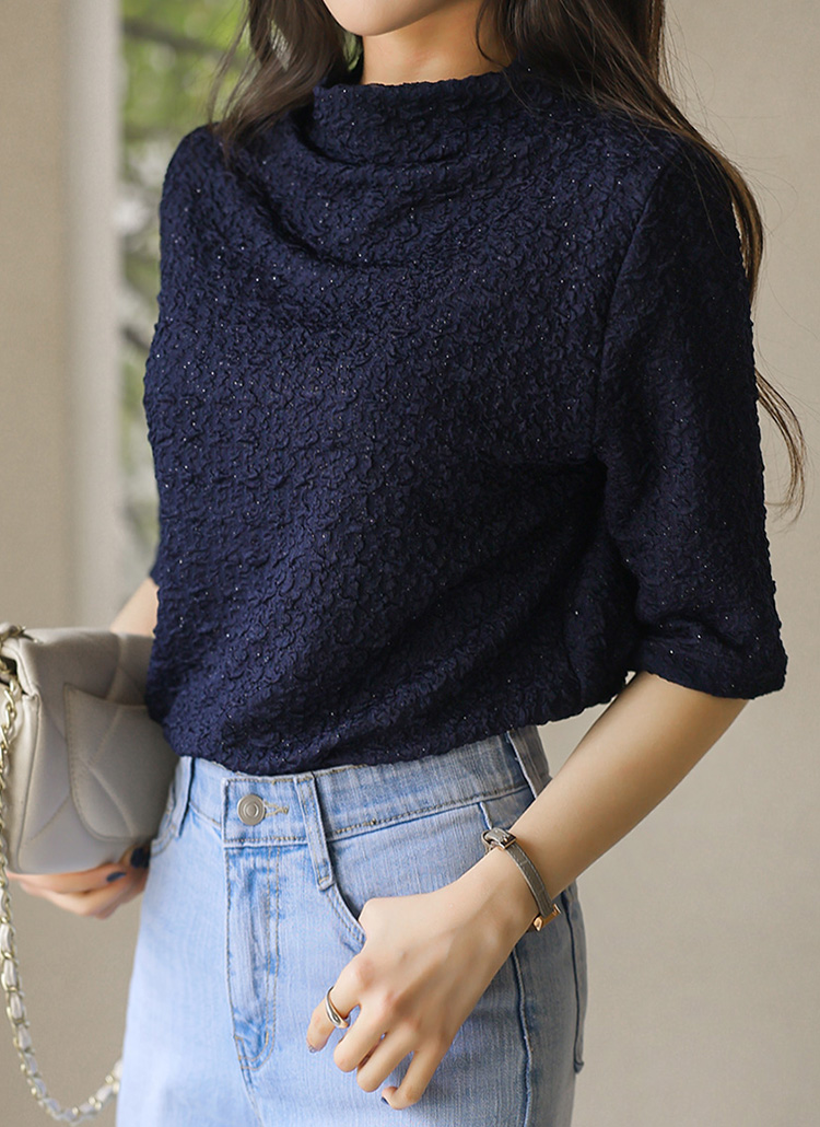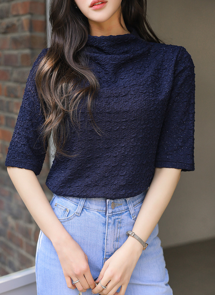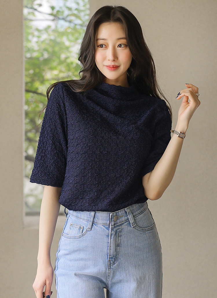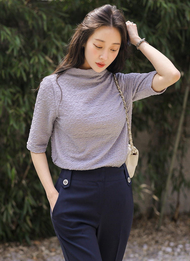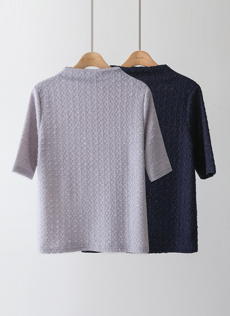 [LouisAngel] 엠보 링클 쟈가드 샤레이스 텍스쳐 반하이넥 5부소매 티셔츠
