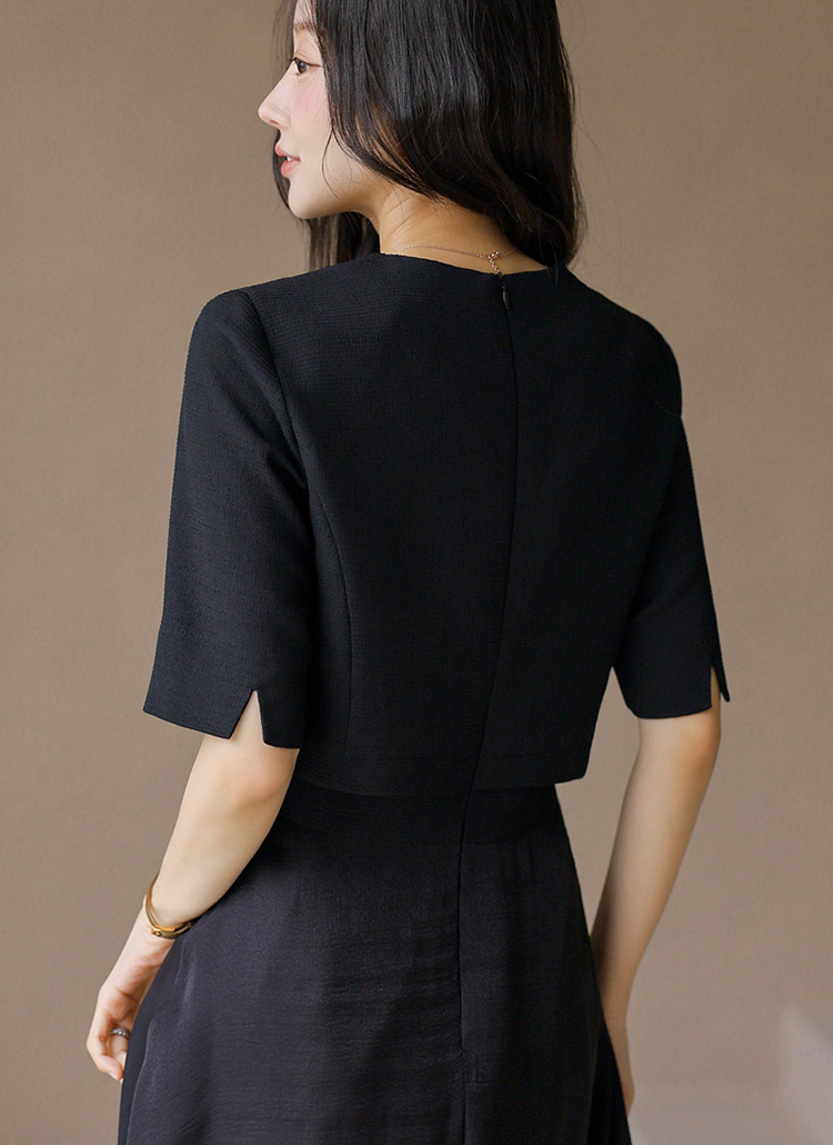 루이스엔젤 특.제 배색 디자인 블랙 원피스예요