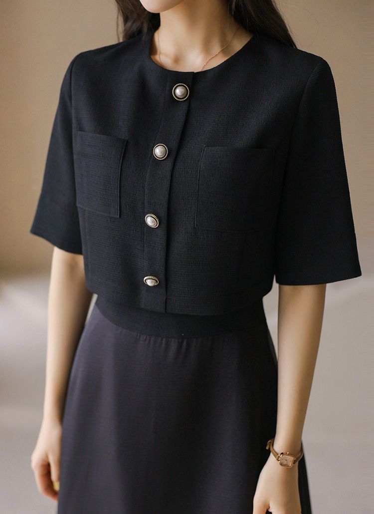 프론트에는 볼드한 진주 버튼 디테일을 더해