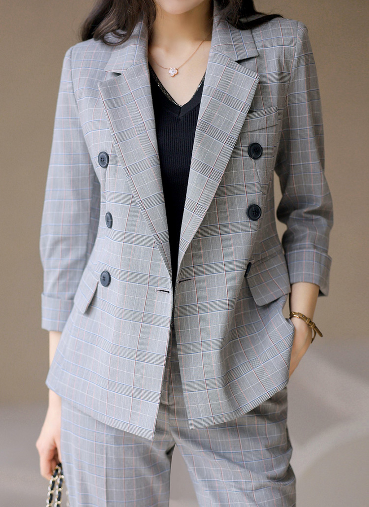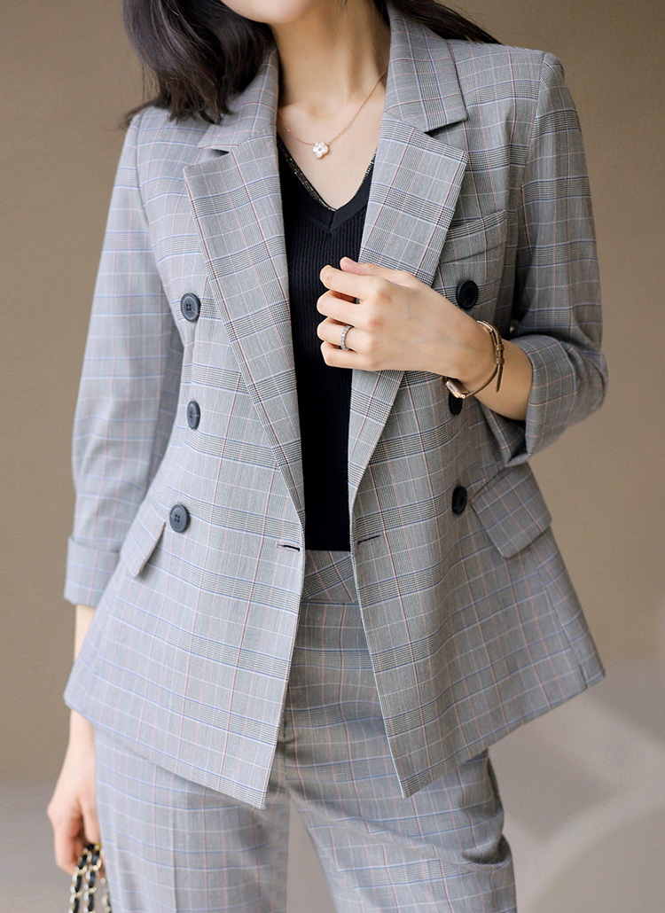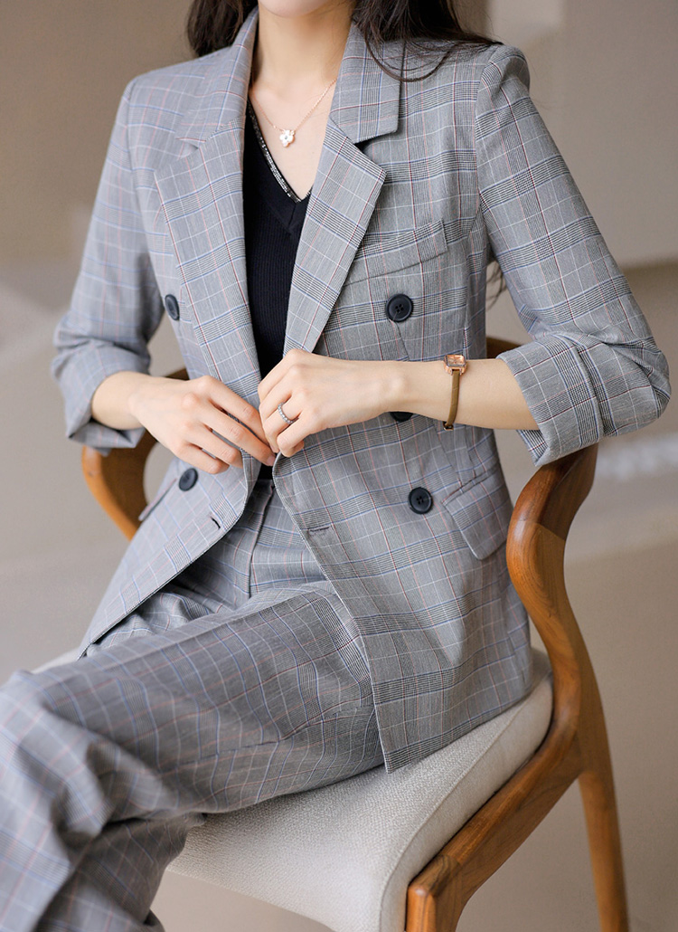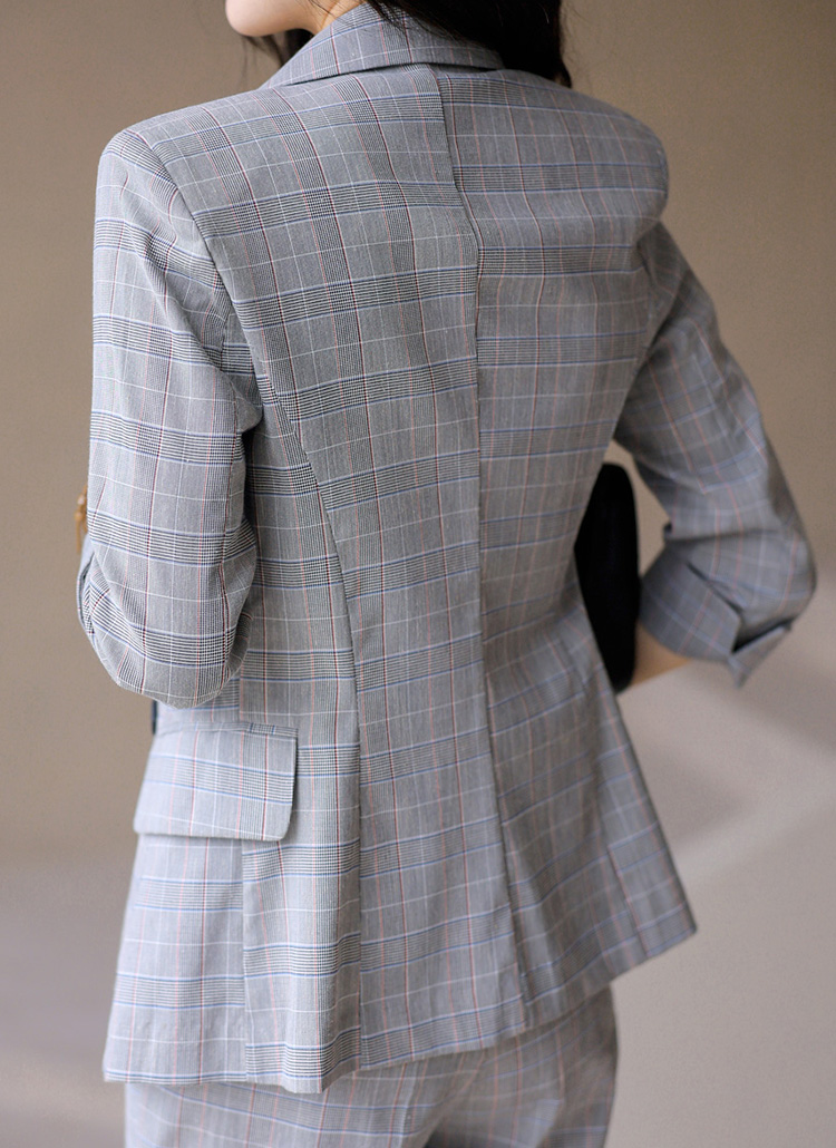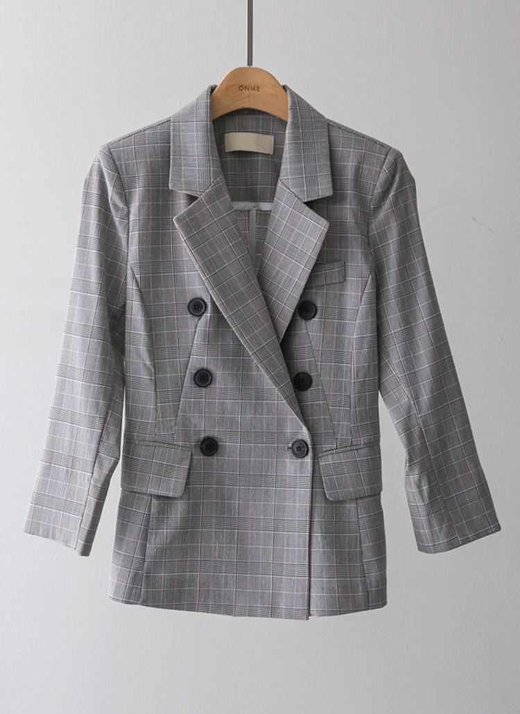 (55-77) 글렌 체크 7부 롤업 소매 슬림 라인 테일러드 더블 자켓