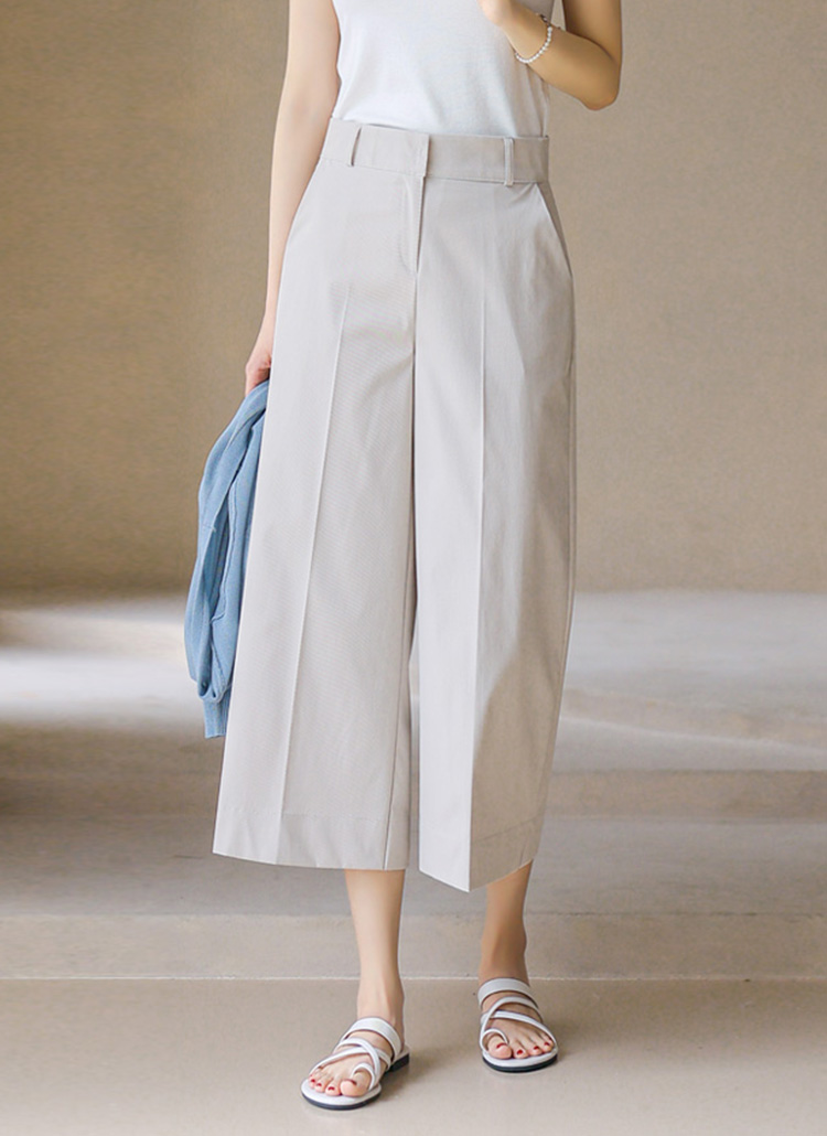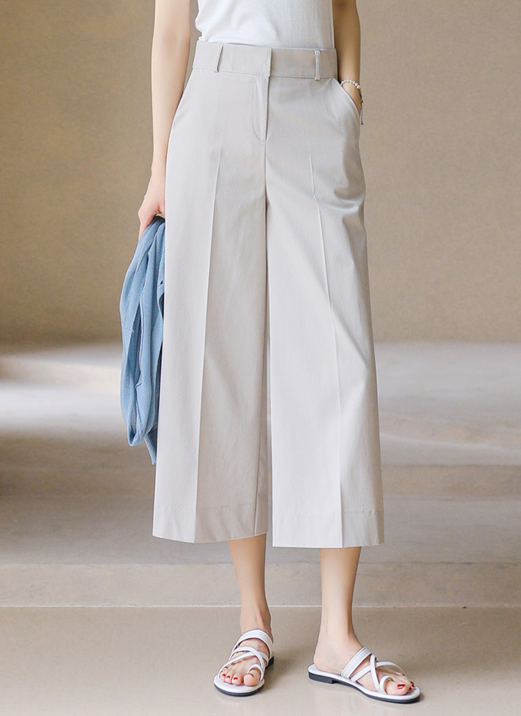 (55-77) 8부 일자 통 세미 와이드 백밴딩 심플 모던 슬랙스 팬츠