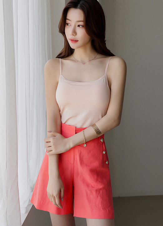 [适合日常轻便穿着的吊带衫,可以调节绳子,非常适合舒适穿着的背心~ 柔软光滑的触感~ 5%混纺面料,有紧致又柔软的弹力,轻薄的面料感,越穿越满意。]